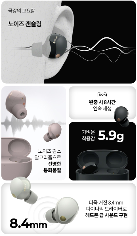 - WF-1000XM5: 저역대 소음 차단 최강