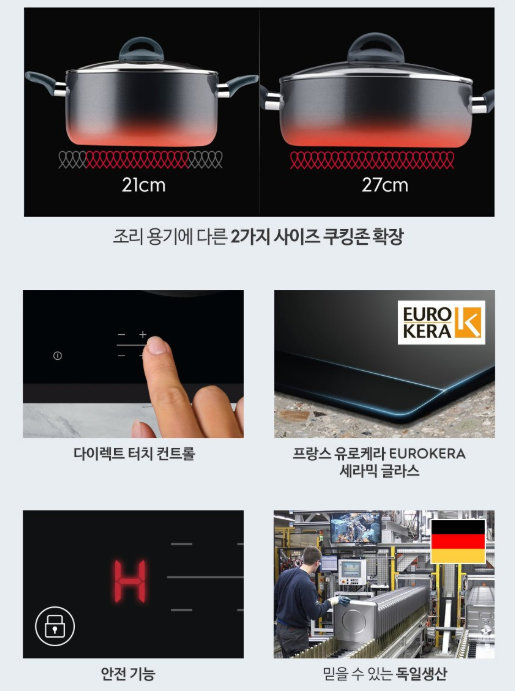 - 특징: 3구 전부 인덕션, 슬림 베젤 디자인