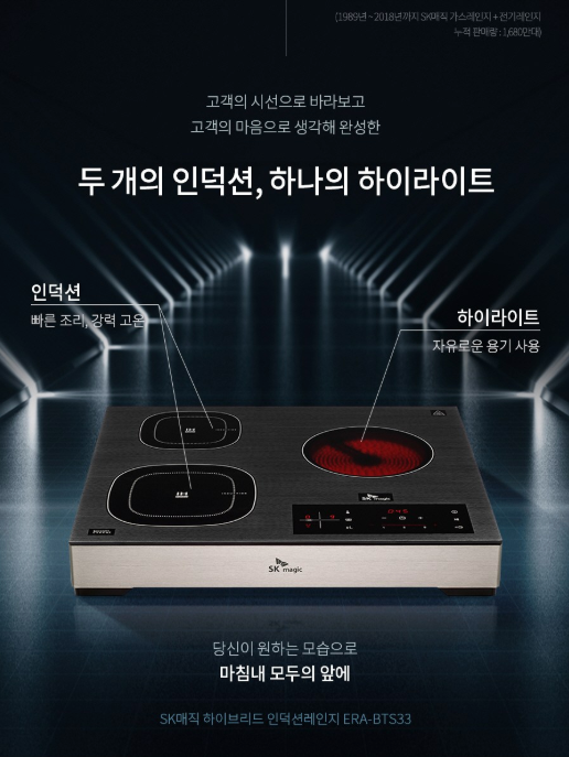 - 특징: 2구 인덕션 + 1구 하이라이트 방식