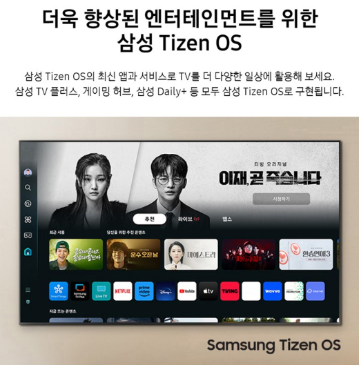 - Tizen OS로 넷플릭스, 디즈니+, 유튜브 등 앱 편리 사용