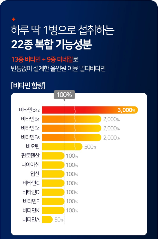 - 멀티 올인원 구성: 비타민 13종, 미네랄 9종, 오메가3, 유산균, 아연, 셀레늄까지 한 번에