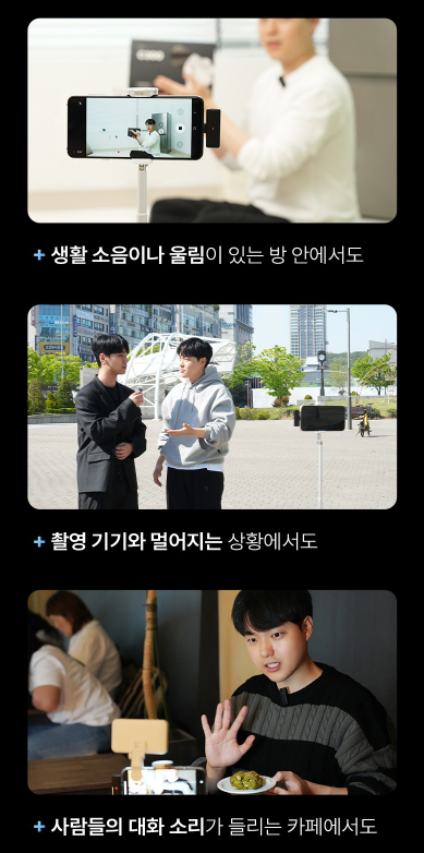- 선 없는 자유로움: 선 꼬임 없이 촬영 가능, 야외 브이로그·인터뷰에 적합.